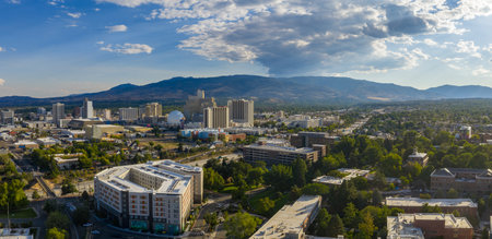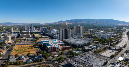 Panoramic aerial view of the city of Reno cityscape in Nevada.