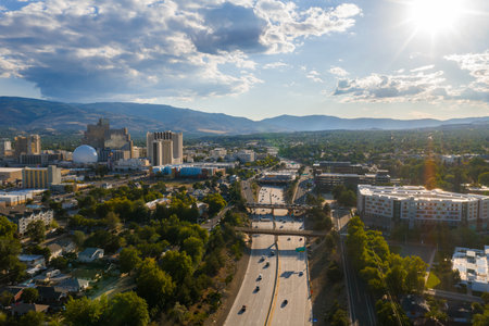Aerial View of Reno, Nevada with Cityscape and Natural Backdrop