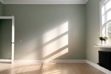 Monochrome pastel sage green empty room with window in modern Wall scene for Textured painted wall
