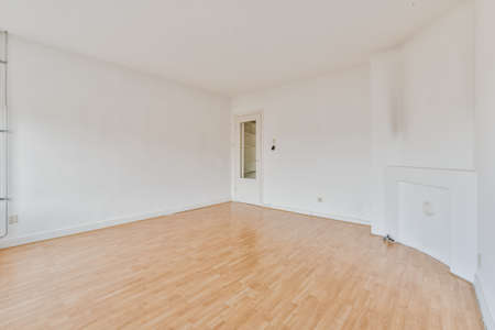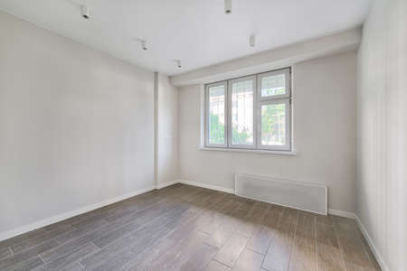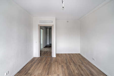 Empty room after repairs in an apartment building. Fresh renovated room with wooden floor