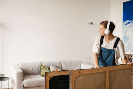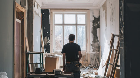 Apartment owner renovating and upgrading, documenting the process for inspiration. Copy Space