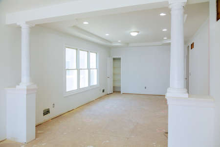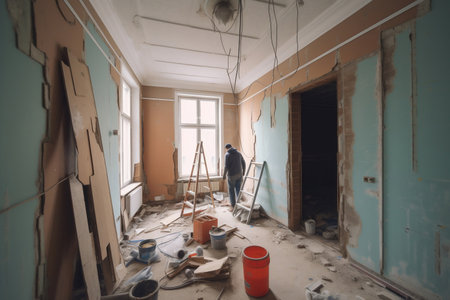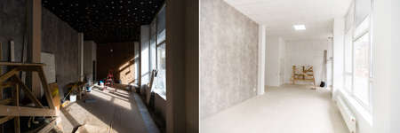 a new apartment repair finishing works in progress, plastering, painting and flooring construction
