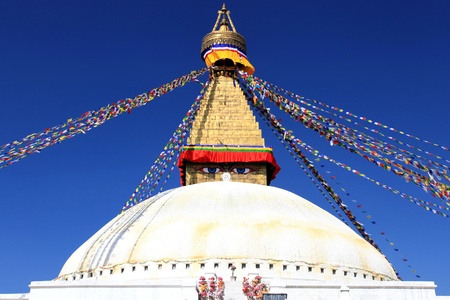 Stupa and prayer flags at Boudhanath stupa in Kathmandu