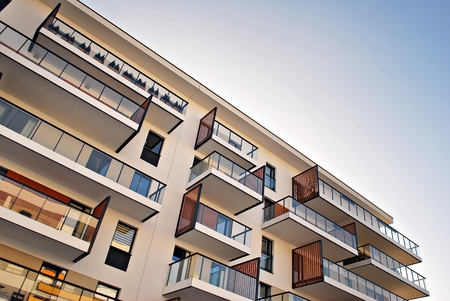 Modern european apartment building with balconies on a clear sunny day