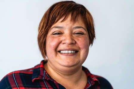 Portrait of curvy mature woman smiling in camera