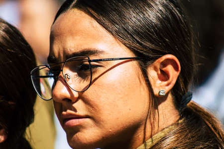 Portrait of a serious girl looking at camera. Angry people with serious gesture. Latin people.