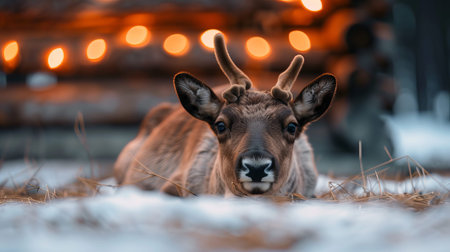 Reindeer rest peacefully in the snowy landscape surrounded by festive decorations that celebrate the spirit of the New Year.