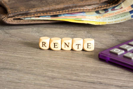 Concept rent. Female hand and the inscription Rent on wooden blocks. Business and Finance. Background.