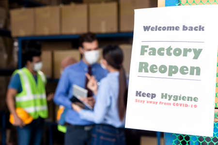 Sign for reopen factory after lock down from covid-19 situation