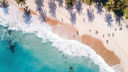 Generative AI : Aerial view of people on the beach along the coastline in Crystal beach Bali Island Indonesia