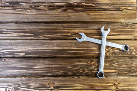 Happy Father's Day. Flat lay with Copy Space on Father's Day theme. Wooden background. On the topic of car mechanic and motorcyclist, biker