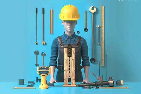 Construction work with tools and instruction manual. Illustrative editorial. September 02, 2021