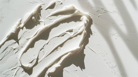 Aesthetic rough smear of face cream or white paint with detailed texture. Light background with sun rays. Generative AI.