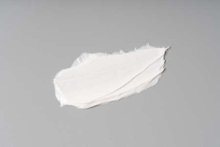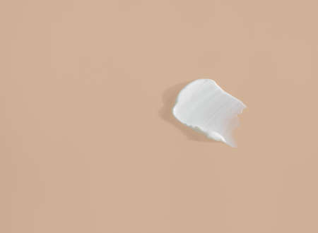 White smear of cosmetic cream on a beige background. Creamy foundation texture isolated. Smear of face cream. Close up of cream texture