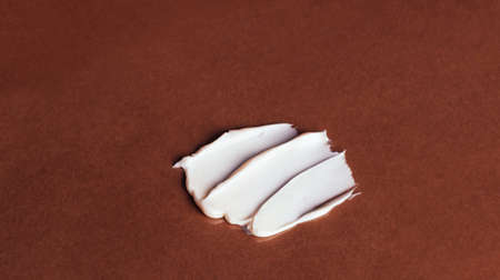 Smear of white face cream on brown background. Cosmetic product texture