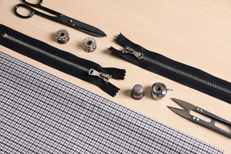 The tailor cuts the fabric. Sewing accessories. Self-development at home. Creating a pattern for sewing clothes.