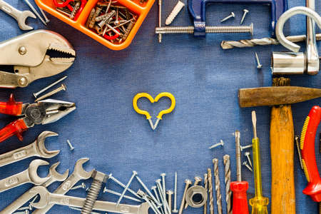 Different tools background and love symbol