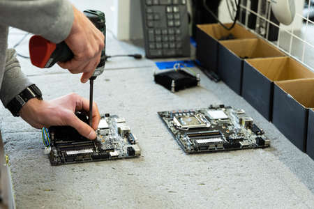 Production or repair pc system - computer with circuit board and tools