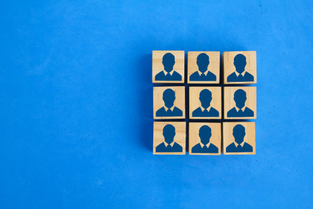 wooden cube and worker icon in square arrangement. The concept of human resources. the arrangement is complete