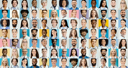 Diverse Multicultural Faces Collage Celebrating Unity in Variety and Human Ethnicities