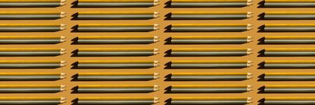 Pattern of trendy gold and silver pencils on gold background. Back to school, education and learning concept. Minimal modern concept. Banner.