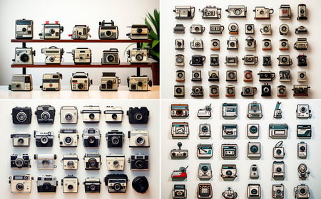 Array of Vintage Cameras Lining the Wall