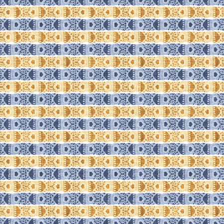 Geo Geometric, Endless Repeat Painting. Navajo, Aztec, American, Cherokee Ornament. Tribal Texture. Old Bed Linen. Brown, Yellow, White Watercolor.