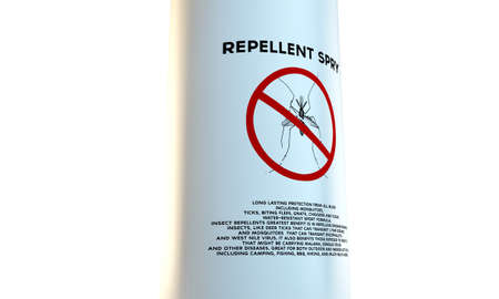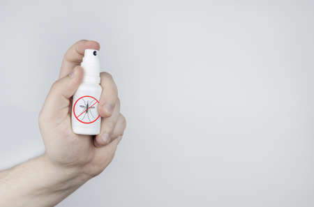 Mosquito repellent. Close-up of an insect repellant spray. Means for repulsion of blood-sucking parasites. concept photo