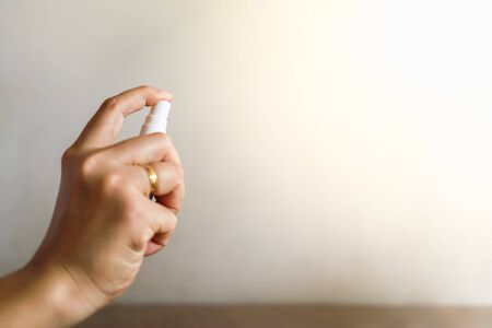 hand using alcohol spray for protect from infection of virus and germ Covid-19 coronavirus