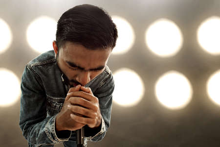 Singer singing with microphone