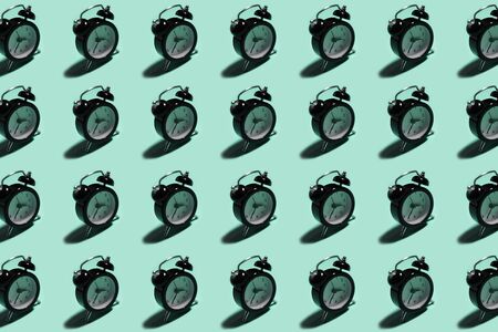 Pattern made of mint spiral copybooks on a yellow background. Back to school concept.