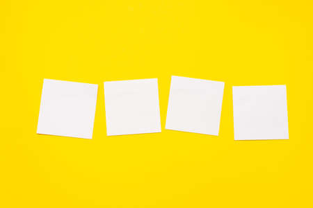 bright colored sticky notes on a yellow background in a row, copy space, selective focus
