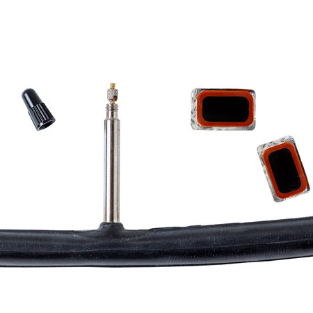 new bicycle cameras with metal presta valves and spare rubber patches for quick repair of bicycle wheels