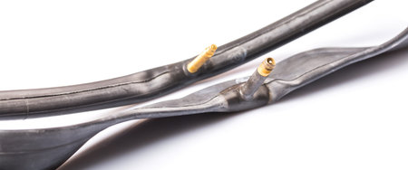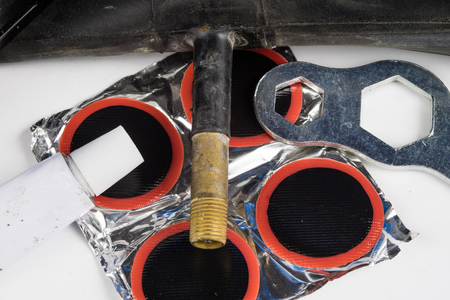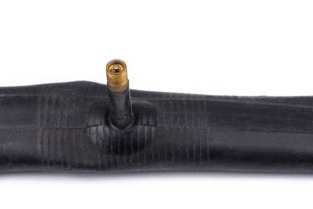 on white background. The camera from the bicycle on it is a patch of raw rubber. Close-up