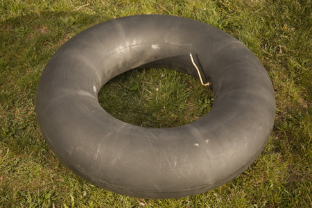 Old deflated Rubber Tire Tube for Bicycling with valve