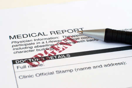 Close-up view of a pen resting on medical forms