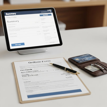 A close view of an application form placed on a clipboard with a silver pen, set against a rustic wooden table, surrounded by green plants, creating a serene workspace.