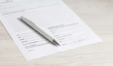 model release document on the table close up,