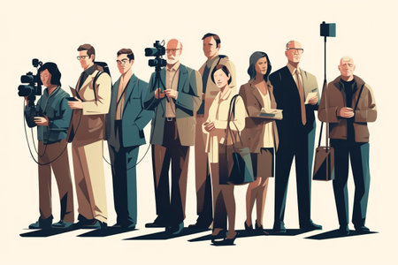 Its a newsstand. Journalists conducting interview of politician. Journalism industry, live streaming concept.
