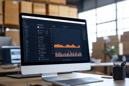 Explore a sleek and modern data dashboard showcasing vibrant charts and graphs. Ideal for illustrating business metrics and data analytics in a contemporary workspace.