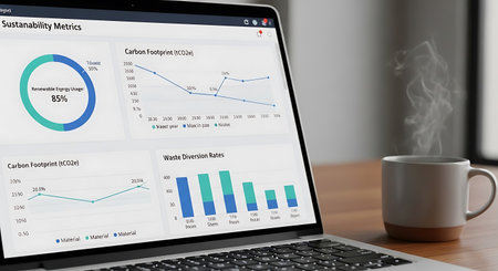 a smartphone in hand showing sustainability data with carbon emissions and waste reduction charts
