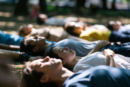 Old men practicing yoga - Shavasana or corps pose is the end of a class or practice - yoga for senior people, active healthy elderly concept.