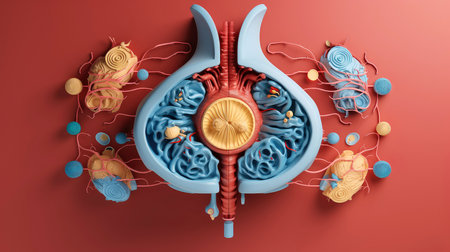 3D illustration of the human organ systems, Human internal organs. Anatomy. Nervous, circulatory, digestive, excretory, urinary,and bone systems. Medical education concept, Generative AI illustration