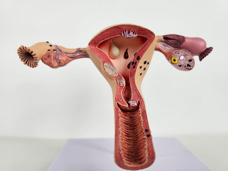 Detailed model of the female reproductive system shown with emphasis on ovarian cysts and health examination