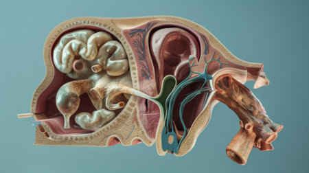 Detailed model of the female reproductive system showing internal organs and structures for educational purposes