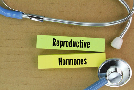 stethoscope and colored paper with the word reproductive hormones. chemical messengers that play crucial roles in regulating sexual development, reproductive processes, and overall