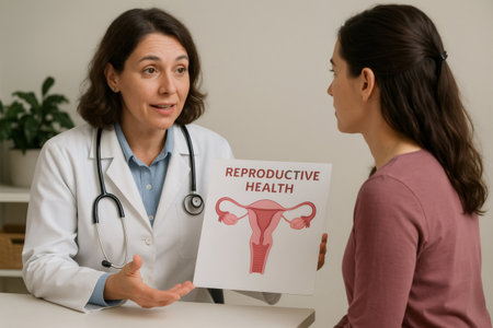 Doctor explaining the female reproductive system to patient during medical consultation, focusing on reproductive health and women's wellness