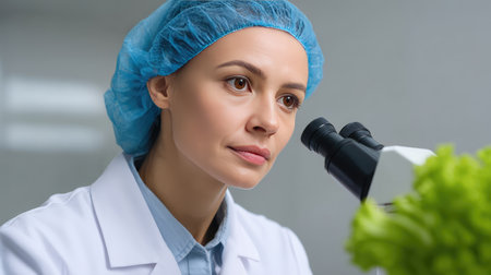 A dedicated researcher examines plant samples through a microscope in a modern laboratory, highlighting the blend of technology and nature in scientific explorations.