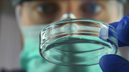 Laboratory research concept, Scientist drop of solution into petri dish for research of drug.