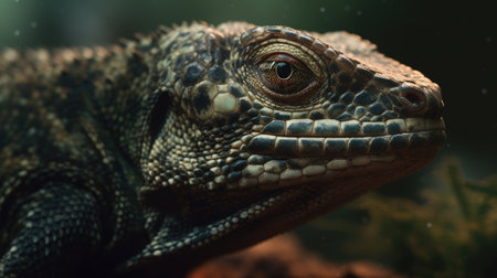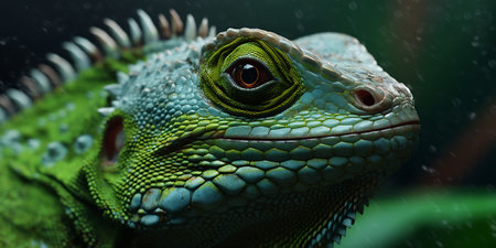 portrait scale wildlife lizard glasses reptile animal close-up iguana green. Generative AI.